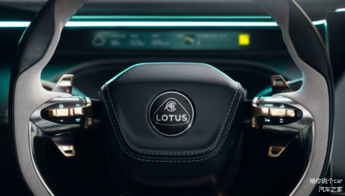 而且,转型成为电动品牌之后,Lotus也更强调整体豪华感。在Eletre车内可以看到金色元素点缀的多功能方向盘,中控台的排档拨柄、快捷拨杆,甚至是车门把手、扶手盖开关,还有排档座鞍部以及车门内饰的饰条也都采用金色材质,除了能够凸显整体的豪华感之外,也让人联想起Lotus过去在F1赛场的经典“黑金”涂装。