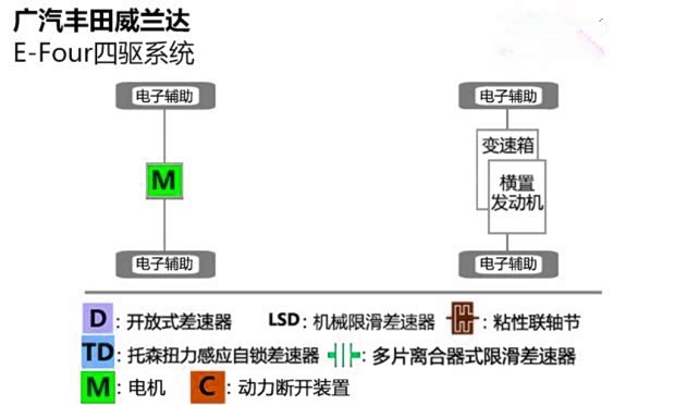 威兰达此款四驱系统尺寸较小,即使是小型SUV也可以搭载,而且轻量化做得不错, 油耗方面仅仅比两驱车型高了0.4L/100KM。同时此套四驱系统集成了AIM四驱综合管理系统,通过ESC的功能可以对打滑车轮制动,把动力通过开放式差速器传递到另一侧有附着力的车轮,可以帮助车辆通过交叉轴测试。