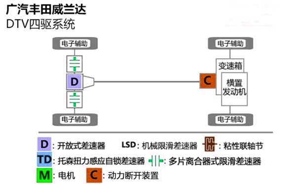 以上是给大家讲解了四驱SUV的优势,下面就请出我们今天的主角-四驱版本的 威兰达(图片 | 参数 | 询价)。通常一款车型只有一种四驱结构,而威兰达则有四种四驱,DTC智能四驱、DTV动态矢量四驱、E-four四驱。首先我们来讲解一下第一种四驱-DTC智能四驱系统。搭载此种四驱配置:2022款 2.0L 四驱豪华版、2022款 2.0L 四驱豪华版PLUS。