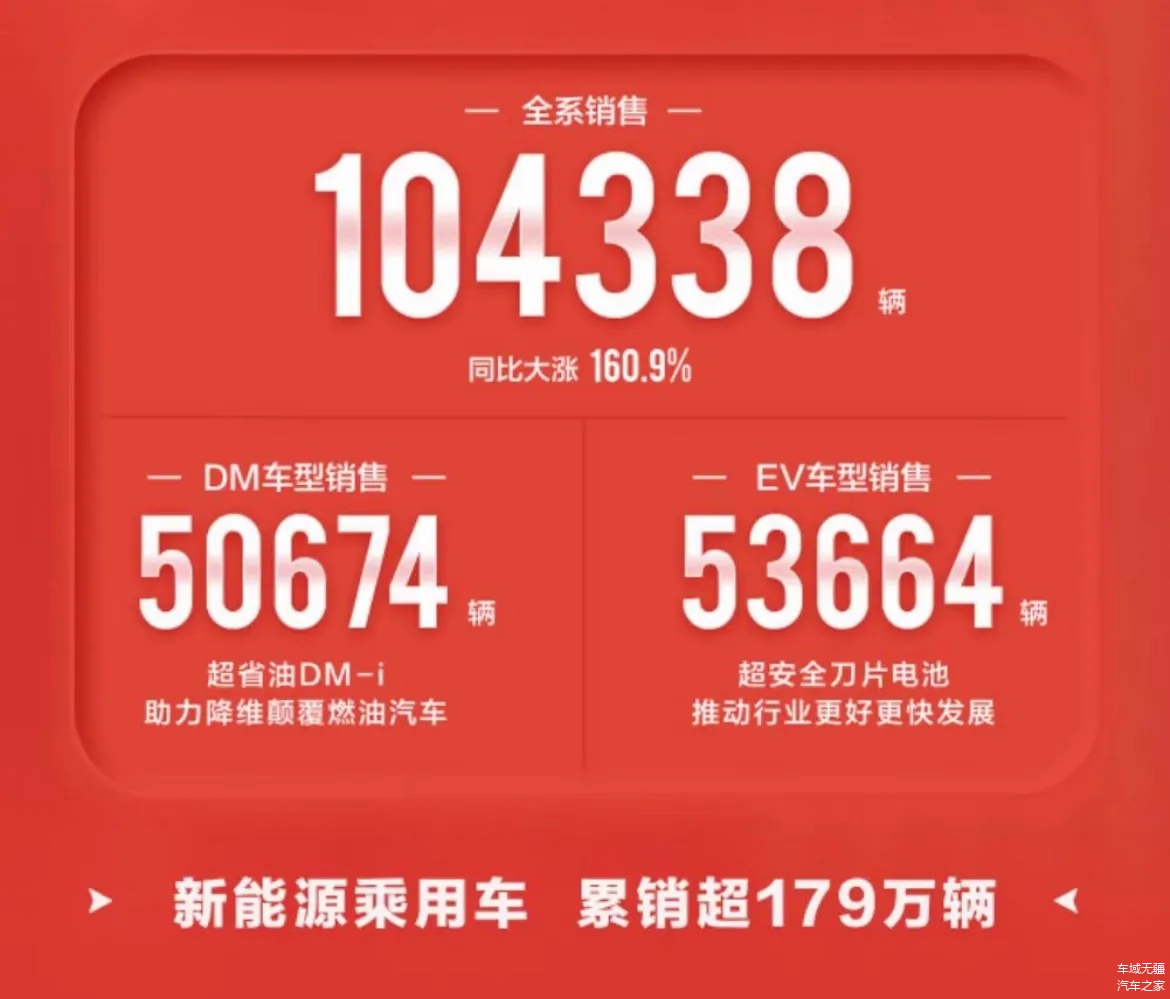 要知道,这样的成绩,还是在产品供不应求的情况下取得的。另外,比亚迪的新能源累计销量超179万,也难怪比亚迪有底气停产燃油车。