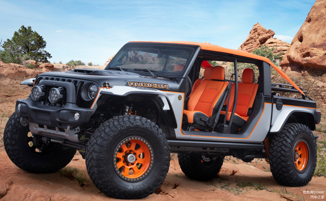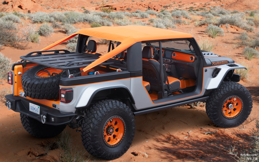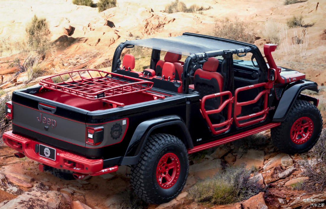 这款Jeep角斗士的车身长度达到了5537mm,车身高度达到了1857mm,后部货厢最宽处为1240mm,最窄处为1140mm,货厢纵深为1500mm,栏板高度为460mm。