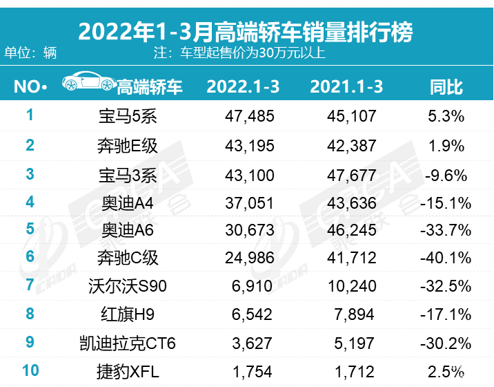 当然,这一轮“新人换旧人”的戏码,仅限于30万以下的市场,今年第一季度高端轿车/SUV榜单依然满是熟悉的面孔,BBA矩阵依然牢牢占据主导地位。乘联会公布了第一季度豪华车的新能源车渗透率32%,但其实除了Model、理想ONE、蔚来ES6、宝马5系插混等几辆热门车外,豪华市场能走量的新能源新车面孔难寻,难道等新势力卖40万以上的新车来“洗牌”?