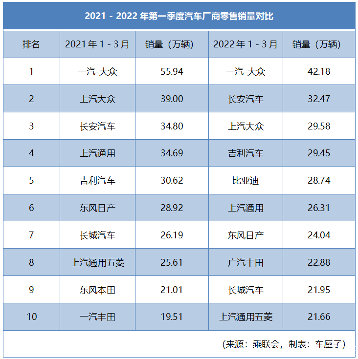 遭同样困境的还有南北大众,在第一季度SUV TOP 15榜单里,南北大众均无一辆SUV上榜,而上海、吉林这波疫情,对两者打击肯定不少,有消息指上汽大众安亭闭环生产期间,日产能下跌近40%,而截止到4月10日,一汽系5家整车厂停产损失接近40万辆销量。
