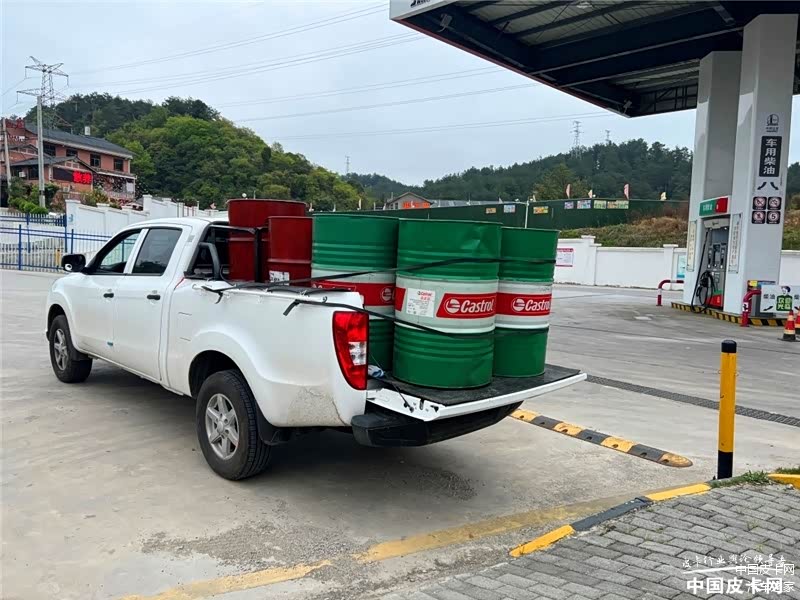 罗先生从事的行业是建筑工程,皮卡专为跑工地使用,江铃宝典大平层货箱版的日常工作便是运送桶装柴油进工地,为挖掘机等大型设备供油。