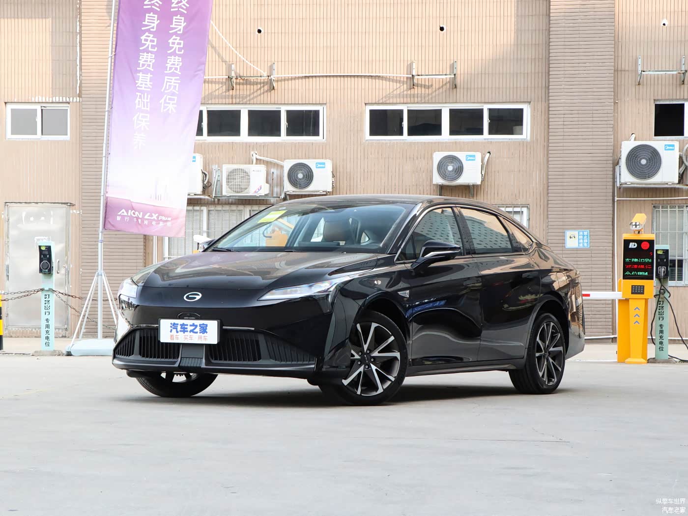 车侧采用常见的溜背式设计,并且配备了新能源车型常见的隐藏式电动门把手。车身尺寸方面,新车的长宽高分别为4810/1880/1515mm,轴距为2750mm,和AION S相比,长度和宽度略有提升,不过整体差距并不明显。