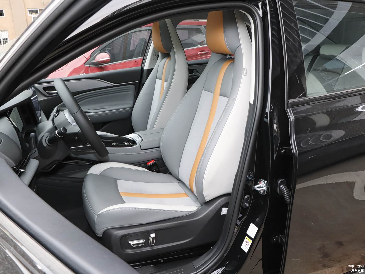 AION S Plus提供一体式运动风格座椅,两款行政版车型均采用皮/织物混搭材质,触感舒适,不过在功能上只支持前后调节、靠背调节以、驾驶位2向高低调节以及驾驶座电动调节。