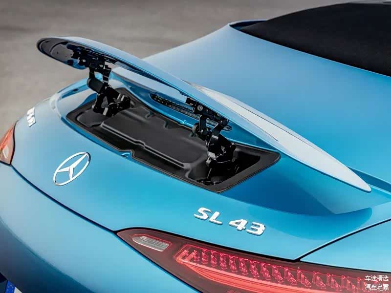 尾部可以用丰腴来形容了,近似三角形的尾灯与头灯形成呼应,左右灯组上方分别为AMG和SL 43标识。这款入门车型后包围两侧缺少了纵向开口装饰,双边共四出排气也采用了圆形设计。相对SL 63而言,新车尾部更偏秀气一些。作为一款性能跑车,电动升降尾翼算是基础配置了,能提升下压力的同时也更拉风。