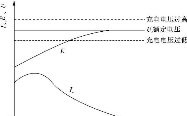 定压充电时,根据Ic=(U-E)/R可知,随着蓄电池电动势E的增加,充电电流Ic逐渐减小。如果充电电压调节适当,则在充满电时充电电流为零,即充电完成。