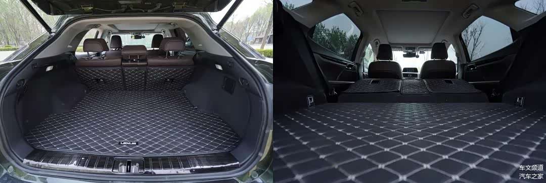 RX300的行李箱空间还是比较规整的,容积是506L,而且行李箱的进深也比较深,满足日常公务和家用需求,基本没有问题。当然,后排也可以按4:2:4的比例灵活放倒,在后排座椅全部放倒的情况下,可以获得一个1579L的空间,不过并不是纯平的,稍微有一点坡度。如果跟家人外出踏青,铺上一层毯子,临时客串大床还是没问题的。
