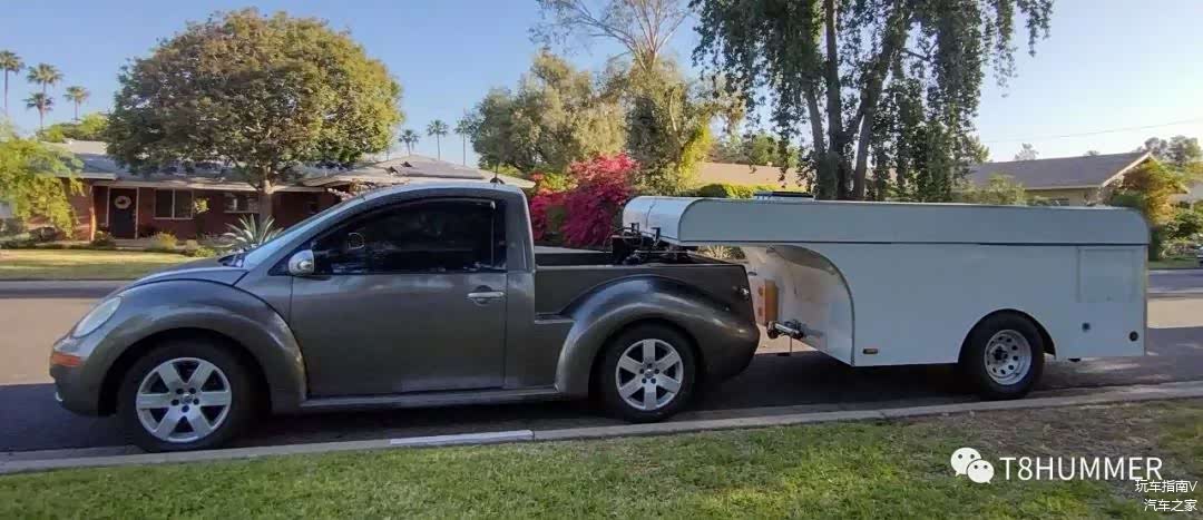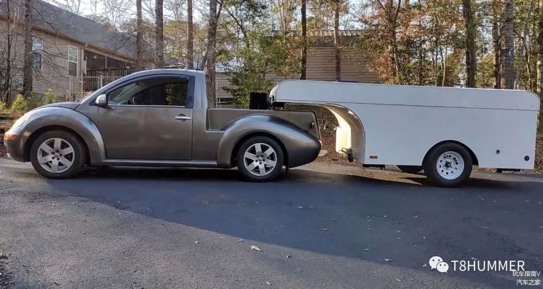 而为了拖车与挂车的宽度同样保持一致,甲壳虫的后轮轮拱部位也进行了一些造型上的改造。完美地解决了稳定性的问题。