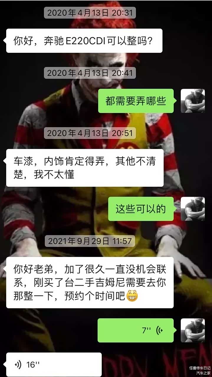 车主2020年加的我好友,初次沟通过奔驰E220 CDI后就没再联系;再次沟通时,已经间隔一年半了,而这次则是一辆二手的吉姆尼,车主刚买到手就想找我整一下,咱约好时间,直接就把车发过来了。