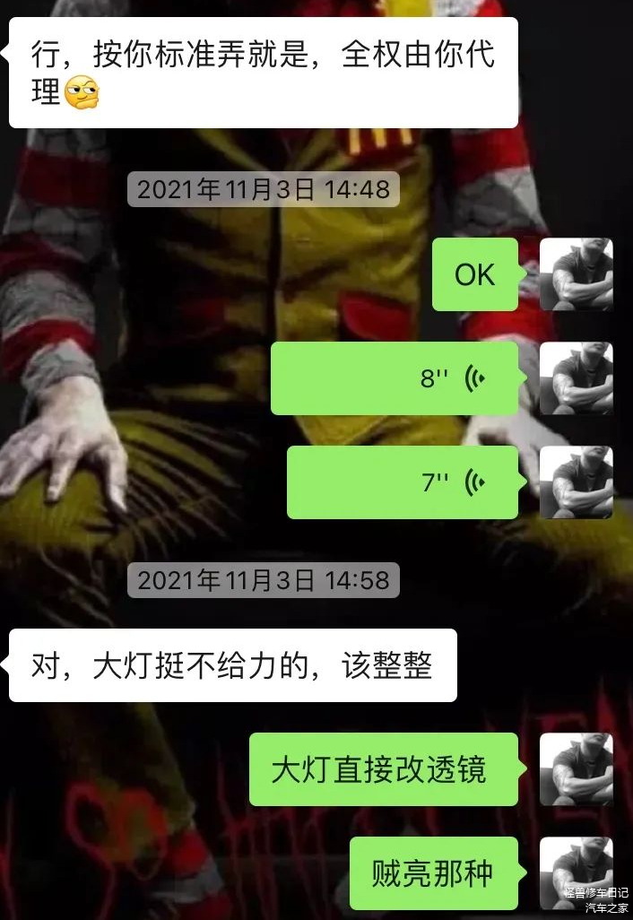 车来时,外观方面,大灯我看着就不精神,所以和车主沟通升级一下,直接说到车主心坎里去了,咱俩是一拍即合。