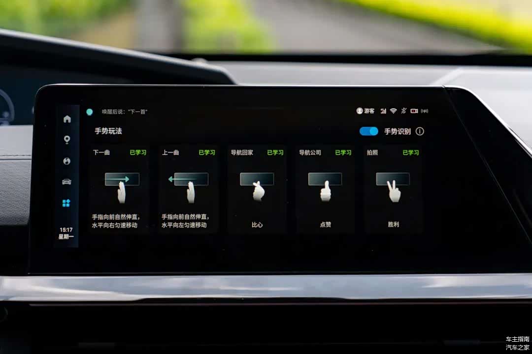 值得一提的是,UNI-V除了拥有常规的触屏操作外,还支持手势控制,默认提供5种手势动作识别,分别是“上一曲”、“下一曲”、“导航回家”、“导航公司”、“拍照”。不过从实际体验上来看,灵敏度不及上一次测试的宝马X3。