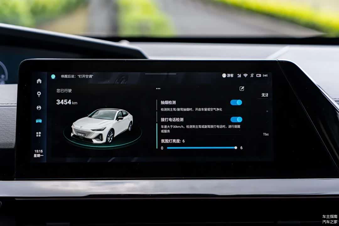 另外车内前排上方的摄像头还加入了场景化主动交互能力,比如可实现当中控屏处于熄屏状态时,驾驶者注视屏幕 1 秒,屏幕即会自动亮起;当识别到副驾乘员抽烟时,可根据车速适度打开车窗并开启车内空气净化;当乘员接听电话时,系统会自动降低多媒体音量,停止接听后自动恢复音量;系统可识别驾驶员眨眼和打哈欠的频次,判定疲劳驾驶等级,采用语音预警、搞怪等方式进行疲劳干预;乘员说出「我要拍照」或者「321 拍」,就能开启拍照功能,唇语辅助识别算法可有效降低噪音干扰。