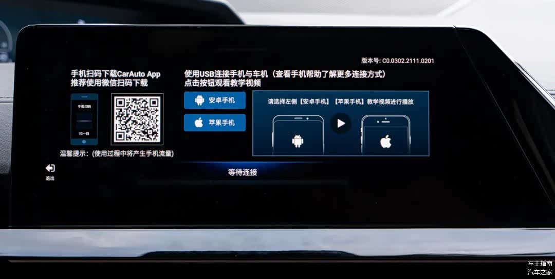 互联模块部分,UNI-V虽然不支持主流的Carplay/Carlife,但其搭载了CarAuto互联系统,支持苹果和安卓手机,具体上可使用数据线连接手机,从而在车机上实现投屏、导航、播放视频以及用手机作为手柄在车机上玩游戏等功能。