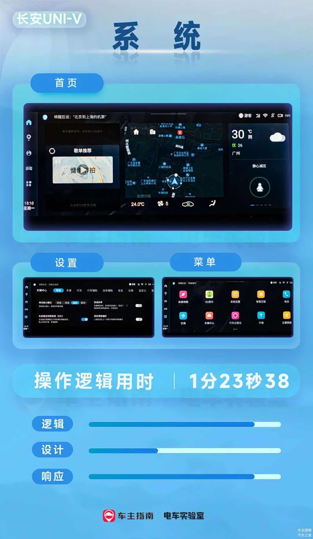 在此次测试的长安UNI-V上,通过众多的交互创新、体验创新的技术,也让我们看到了自主品牌在智能座舱上的进步,尤其是系统逻辑/响应和智能语音尽管在硬件相似的大环境下,长安通过软件方面的尽善尽美,给予我们更惬意的感受,这一点非常值得某些主机厂学习。