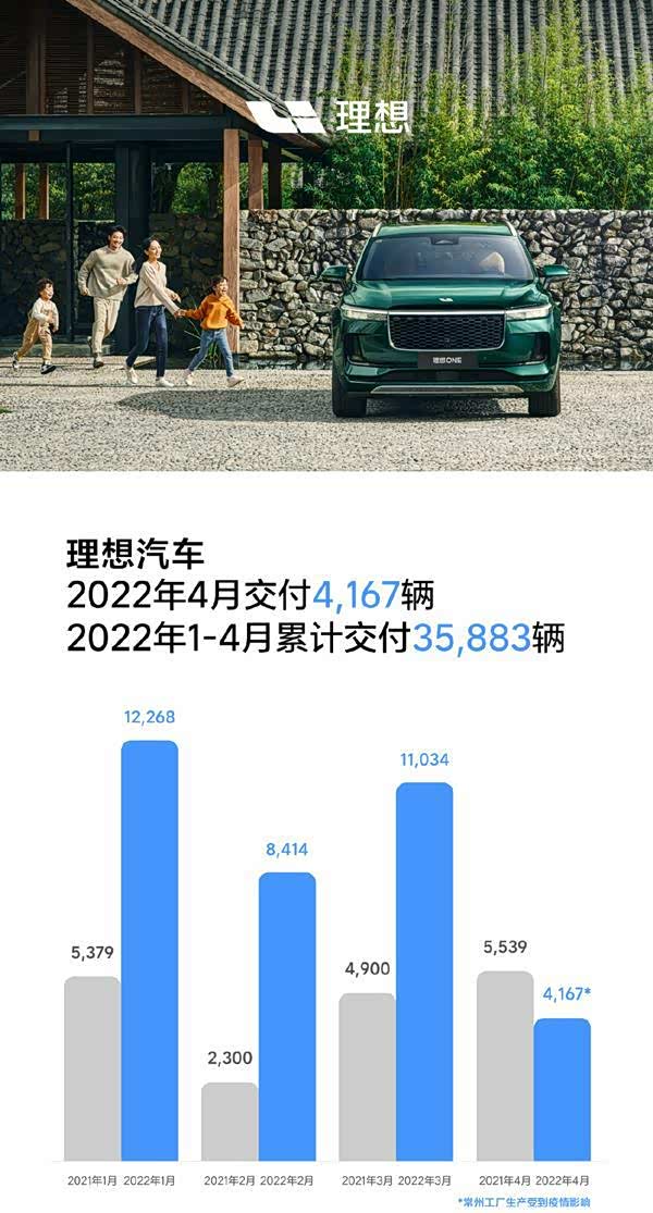 近日,理想汽车公布4月交付数据,共交付了4167辆理想ONE,同比和环比都是大幅下滑。
