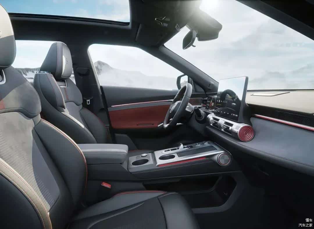 如果说影酷的外观设计与兄弟影豹毫不相关的话,那内饰设计两者的“关系”似乎一下子有拉近了许多。从图片可以看到,影酷整体的内饰设计布局与影豹几乎是一样的,不过在细节部分的设计元素上又有了新的不同。