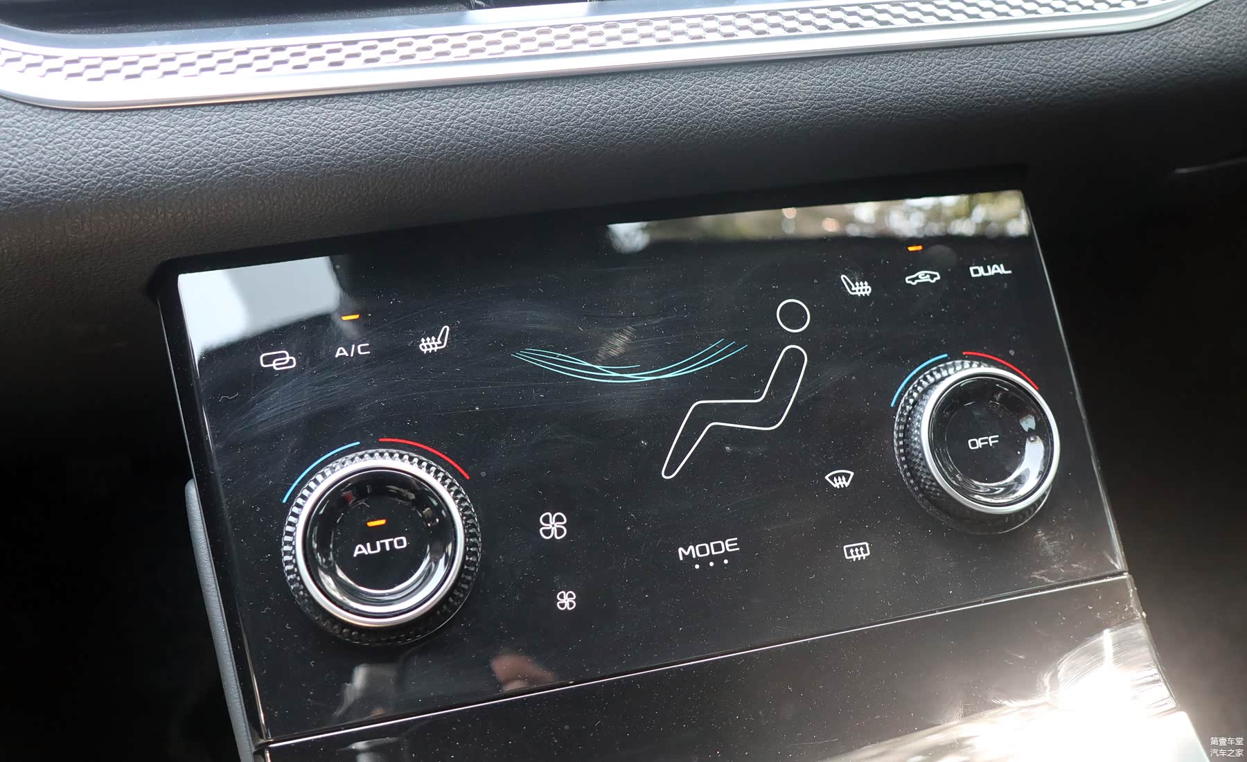 中控下方是空调控制区域,采用了触控面板设计,虽说触控没有震动或者其他物理反馈,但是触控的灵敏度还不错。由于触控面板没有液晶屏幕,因此空调信息显示还是需要通过上方的中控屏来完成,可能是出于成本考虑而没有直接采用液晶触控面板。