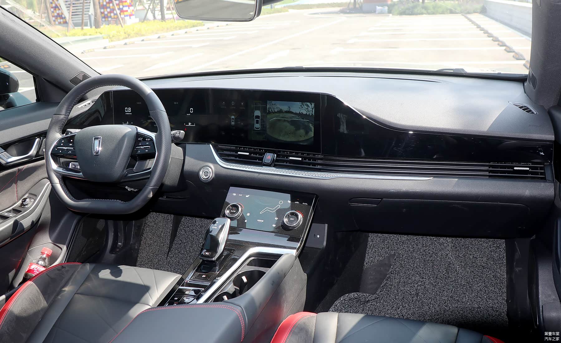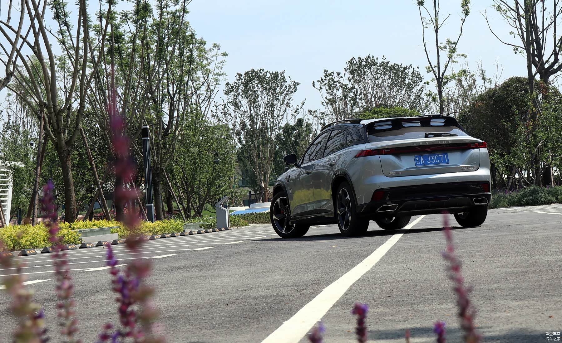 尾部设计则极具层次感,黑色扰流板、微微上翘的尾翼、贯穿式尾灯组以及下部的黑色保险杠显得错落有致。值得一提的是,尾灯组采用了被称之为“长城箭垛”的造型设计,跟车头的古代兵器“戈”大灯组形成了呼应。