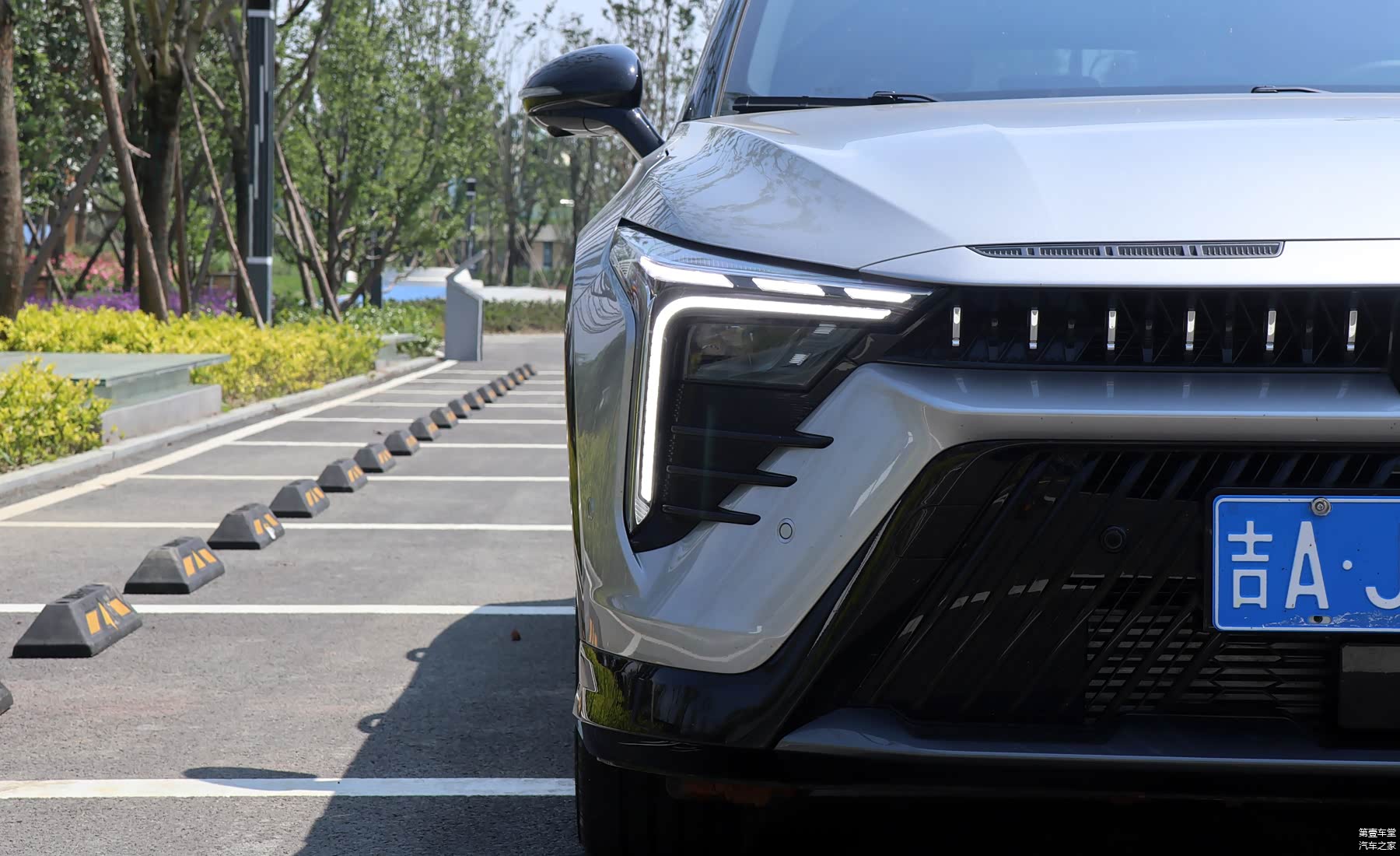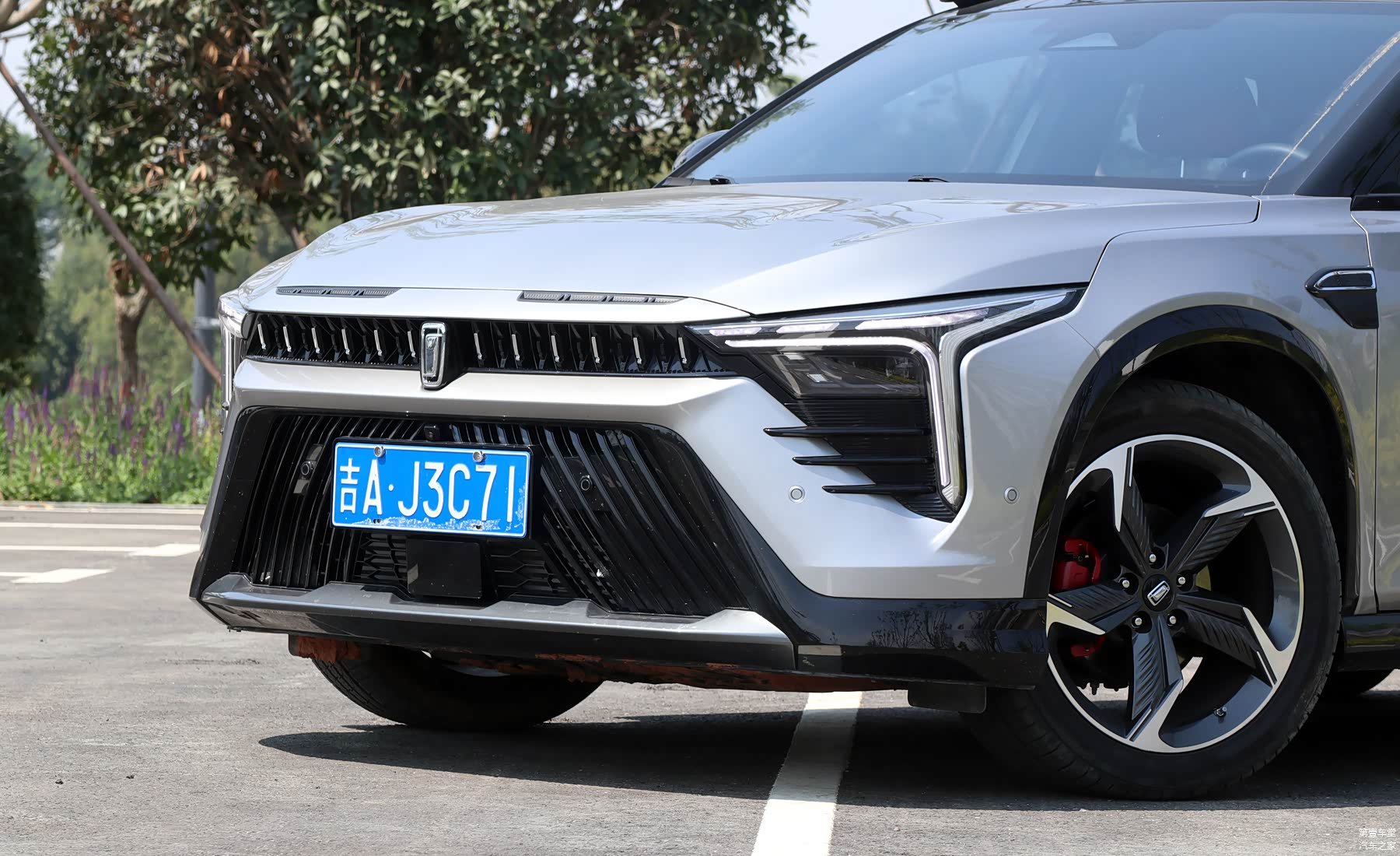 大灯虽没有采用比较激进的分体式大灯设计,但是其源自古代兵器“戈”造型的设计,还颇有点凯迪拉克的味道。日行灯点亮之后更是将“戈”完美呈现,并且日行灯上部分还采用了三段式设计,很好的与中网形成了统一。