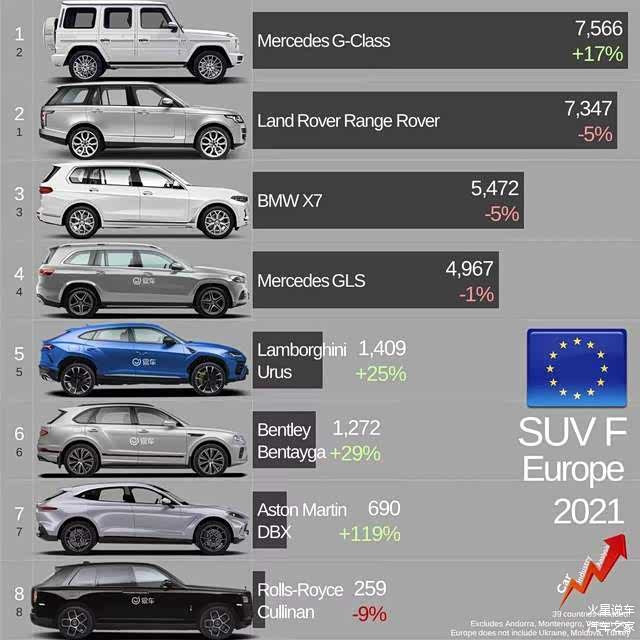 2021年欧洲各个细分市场的销量数据已经公开,其中在超豪华SUV市场内,整体格局还是没有太多变化,毕竟像这种可以称的上是小众的细分市场,车企入门的门槛非常高,要是没有一点口碑影响力的话,几乎很难有所发挥。那么在去年欧洲市场上,又有哪些SUV车型卖的特别好的呢?