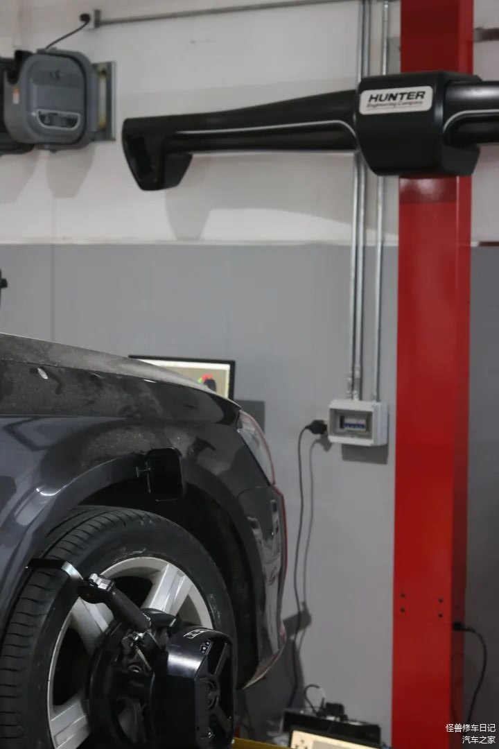 采用美国HUNTER定位仪,开始四轮定位,做整体底盘数据调教。
