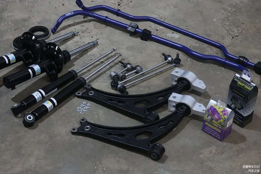 避震系统升级(倍斯登)BILSTEIN B4+塔顶加装降震垫片+澳洲聚氨酯强化胶套+磨损件摆臂及拉杆更新+升级德国HR防倾杆。