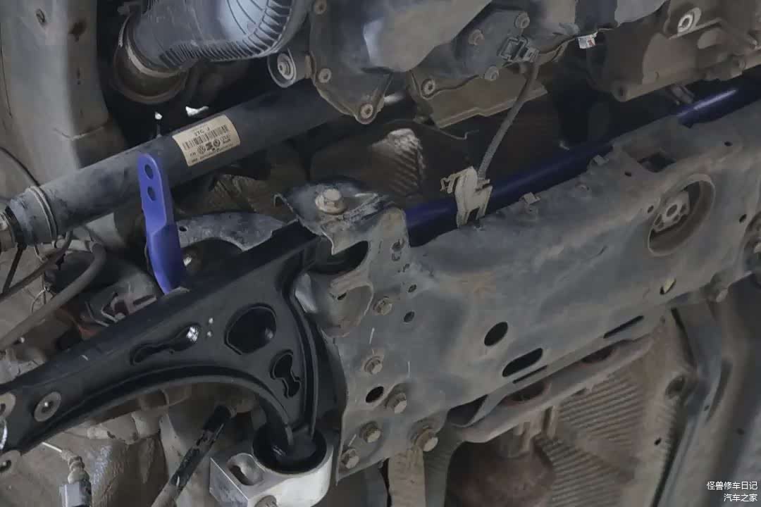 前防倾杆安装,需要拆卸元宝梁,还是比较麻烦的。