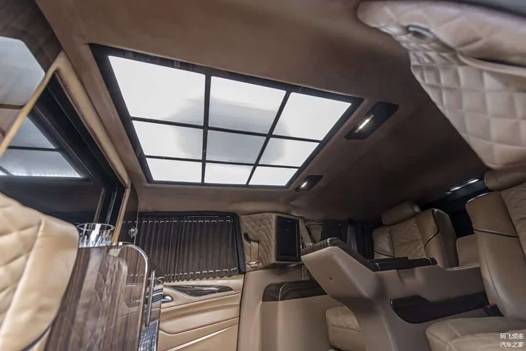 乘客可以通过平板电脑控制折叠桌、隐私窗帘、天窗和双温区自动空调,同时作为一款防弹车,内部还配备了隐藏式的保险箱,和专门存放武器的保险箱。