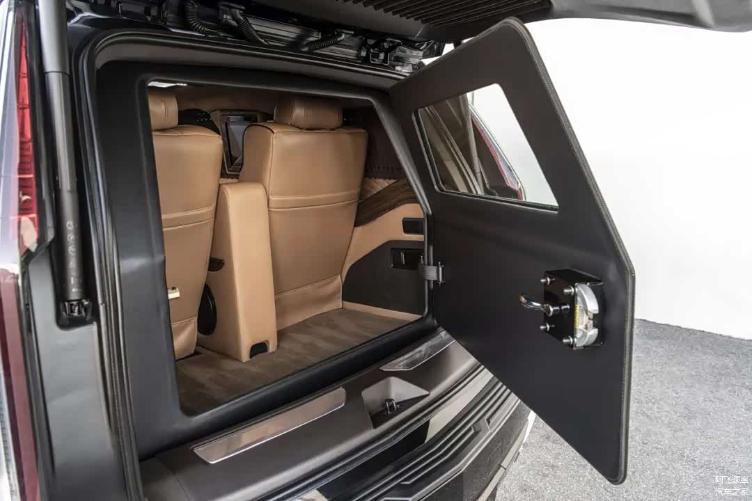 值得注意的是, 果您平时会放置很多行李,比如成箱的现金或是其它贵重物品的话,这辆车可能并不适合您,因为这辆车的行李箱真的很小,车辆的尾部增加了防弹后门,使得整个行李箱空间看起来像一个金库。
