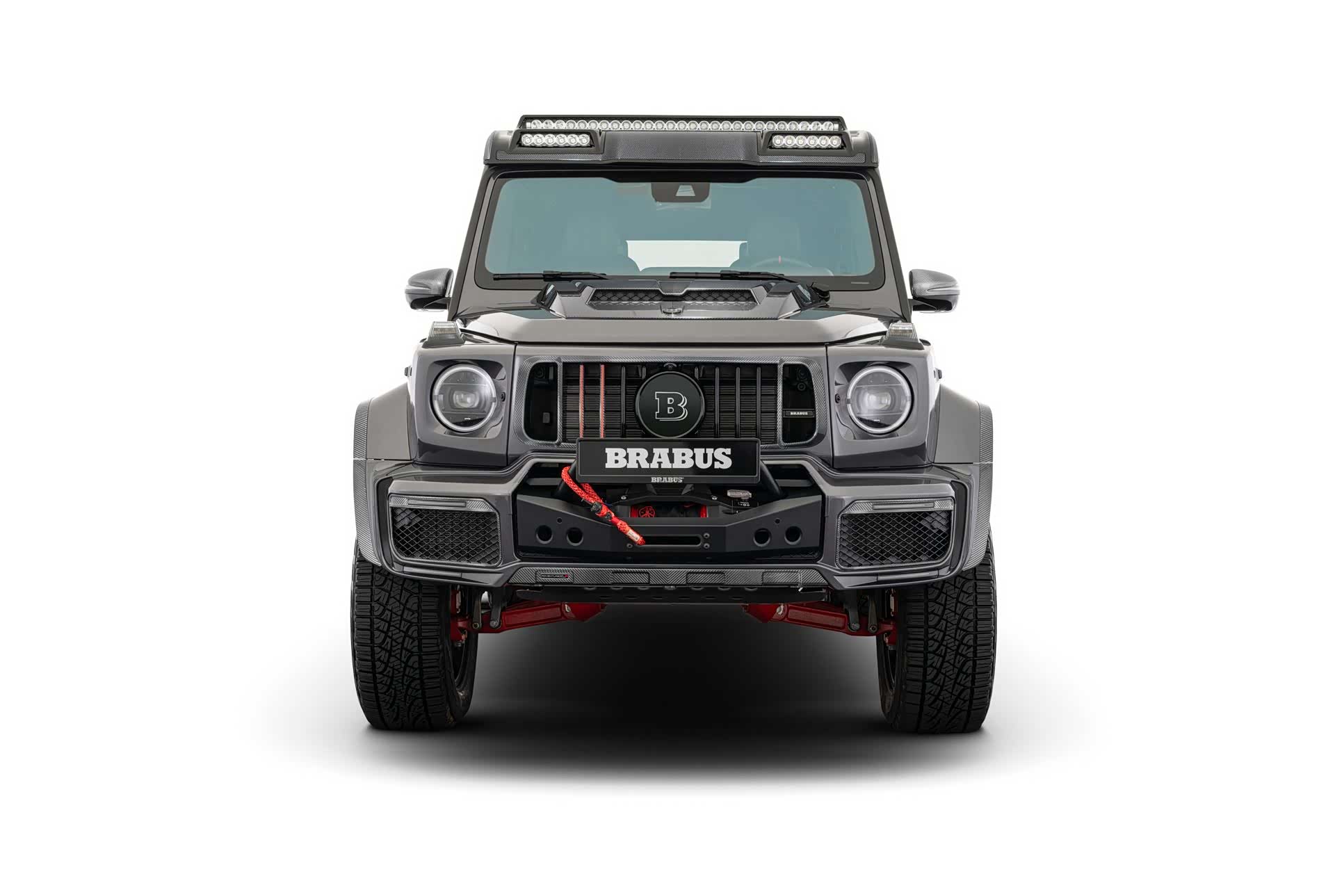 外观部分,巴博斯 900 XLP使用巴博斯 WIDESTAR车身部件,大量的碳纤维空力套件增添战斗气息,包含前后轮弧、前保险杠、后保险杠以及引擎盖进气孔等。 在车顶上方,安装特殊的LED探照灯,足以让车辆前方一片光明。 越野车常常让自己身处危境,前方特别安装一组拉力可达4,500公斤的绞盘,对应这辆车重高达快三吨的庞然大物,依旧能提供有效帮助。
