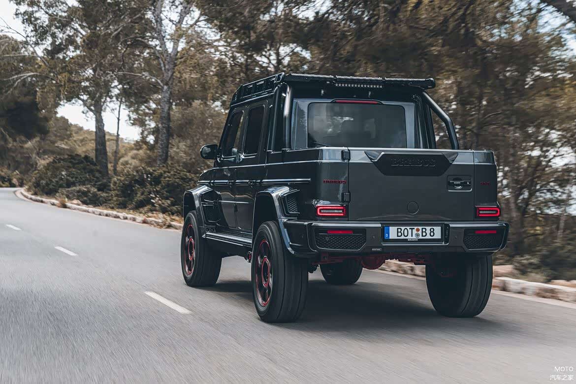 底盘悬吊部分,前方双A臂独立悬挂有一个新的副车架及各种CNC加工的轴连杆,而后部保留原设计的拖曳臂结构,只通过模块化钣件延长了轴距。 另外,底盘结构虽维持原厂样式,但Brabus做出自己的调整,导入多项自行设计由铝坯铣削而成的底盘连杆、轴承等,使其车身高度增加490mm。