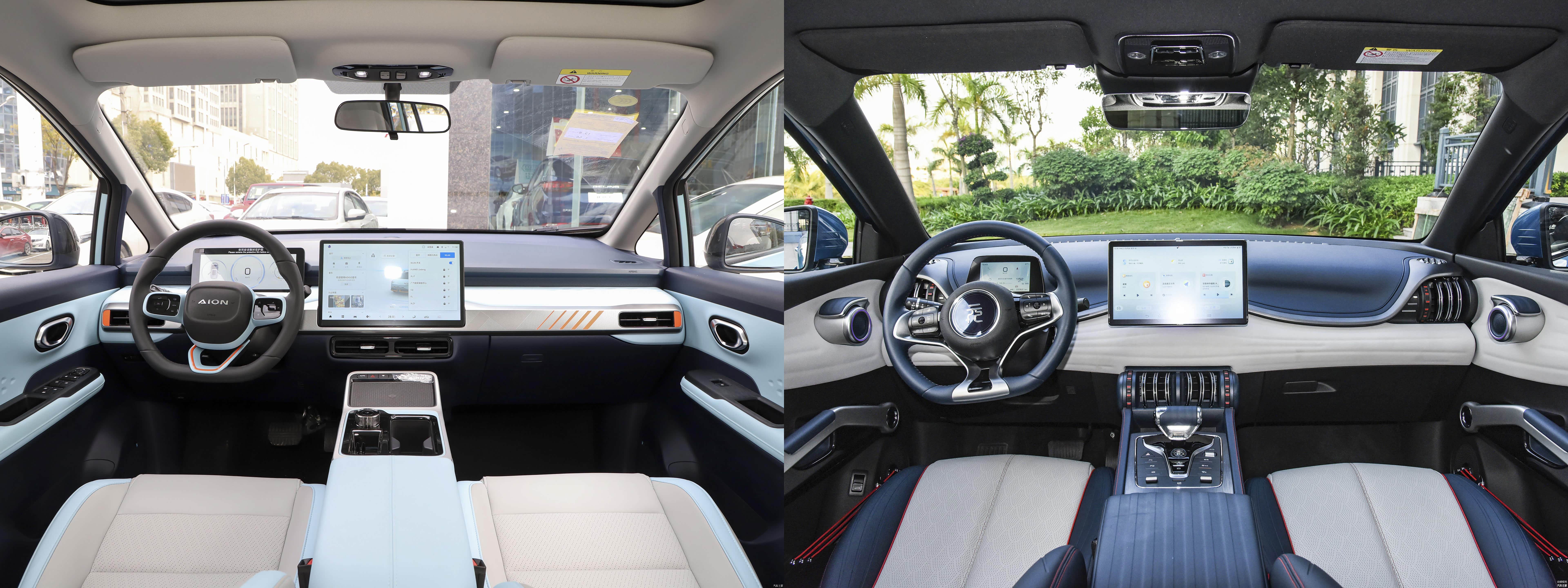内饰方面,埃安AION Y采用了10.25英寸的液晶仪表盘,相比元PLUS更具优势,埃安AION Y搭配的中控屏尺寸为14.6英寸,尺寸比元PLUS的稍小。配置方面,埃安AION Y也没有标配可开启的全景天窗,但是可以后期选装。埃安AION Y的其他配置与元PLUS相比都在伯仲之间,隐藏式电动门把手、前排座椅加热/通风、面部识别也是一应俱全,不过车内氛围灯的缺失略显遗憾。