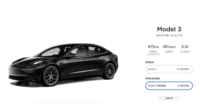 当你准备好38万左右的预算,打开特斯拉订购页面,发现 Model 3(图片 | 参数 | 询价) 高性能版预计交付周期会是16-20周的时间。