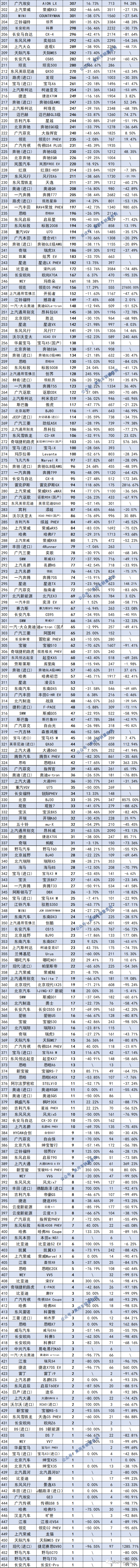 4月SUV各车型销量表现,还有180辆不超100辆的车型,可谓跌落到低谷,其中不乏一些车企认为的主流车型。具体如下: