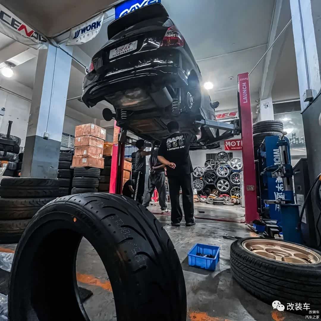"订避震的第二天就给上面那台GE8‘小可爱’给教唆买了套‘国断’RP01,附带4条半热熔卫途V02R,跟避震一起上车。"