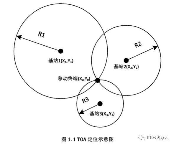 同时,作为一种通信技术,UWB的定向能力也要比WIFI和蓝牙要强得多,我们常用的蓝牙钥匙,它的定位原理是通过AoA也就是到达角度测距技术,而UWB的定位核心原理则是ToA,也就是到达时间测距。这种测距方式是通过至少三个信号基站,每一个信号基站接收到信号的时间差不同,利用时间差和传输速度最终形成一个距离,然后以信号基站为圆心,距离为半径画一个圆,三个信号基站所画出的圆最终的交点,就是最终定位点。
