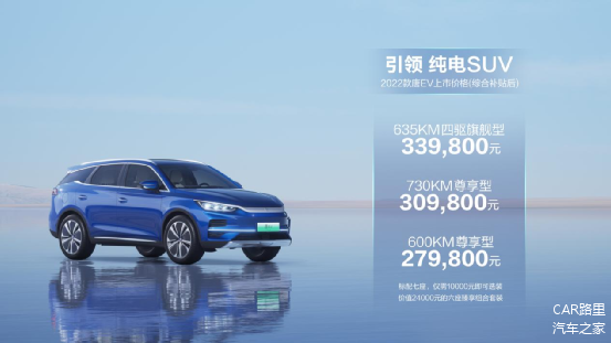 6月1日,比亚迪2022款唐EV正式上市,新车提供600km、635km、730km三种续航版本,补贴后售价27.98万元-33.98万元。同时,比亚迪推出了“2大无忧购车政策、1大无忧用车保障、5大专属贵宾服务、5大智联在线服务”四项购车权益,可谓诚意满满。