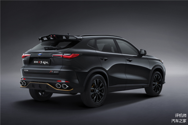 在配色方面,欧尚X5侠客版全身“黑化”,就像武侠小说中的“侠客”一样。另外侠客版在车身的细节处进行了调整,比如大嘴进气格栅边缘处通过哑光饰条来点缀,并且还增加了金色饰条等装置,让车头显得更为犀利。配合全新的钢琴黑双五辐轮圈、暗金制动卡钳、尾部的大尺寸扰流板和双边共四出的排气布局,在视觉方面增强了运动感。当然它开起来是否真的“运动”,还要等试驾后才能知晓。