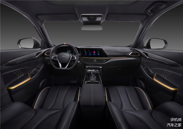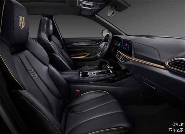 在内饰方面,新车也同样显得很“侠客”:比如熏黑的内饰,中控台和方向盘装饰条的金色元素作为点缀,暗黑氛围等等,和车身的配色统一。另外,它的座椅头枕上还有特制侠客专属徽记。