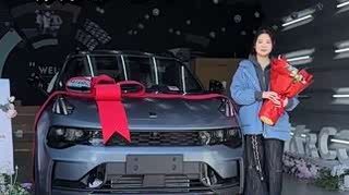 等了两个月,终于提车了,美女粉丝带着家人一块去4s提车。
