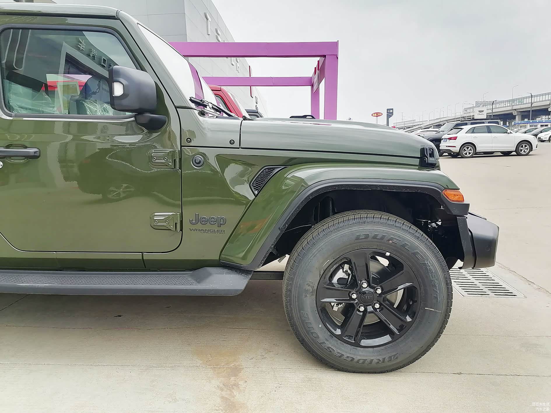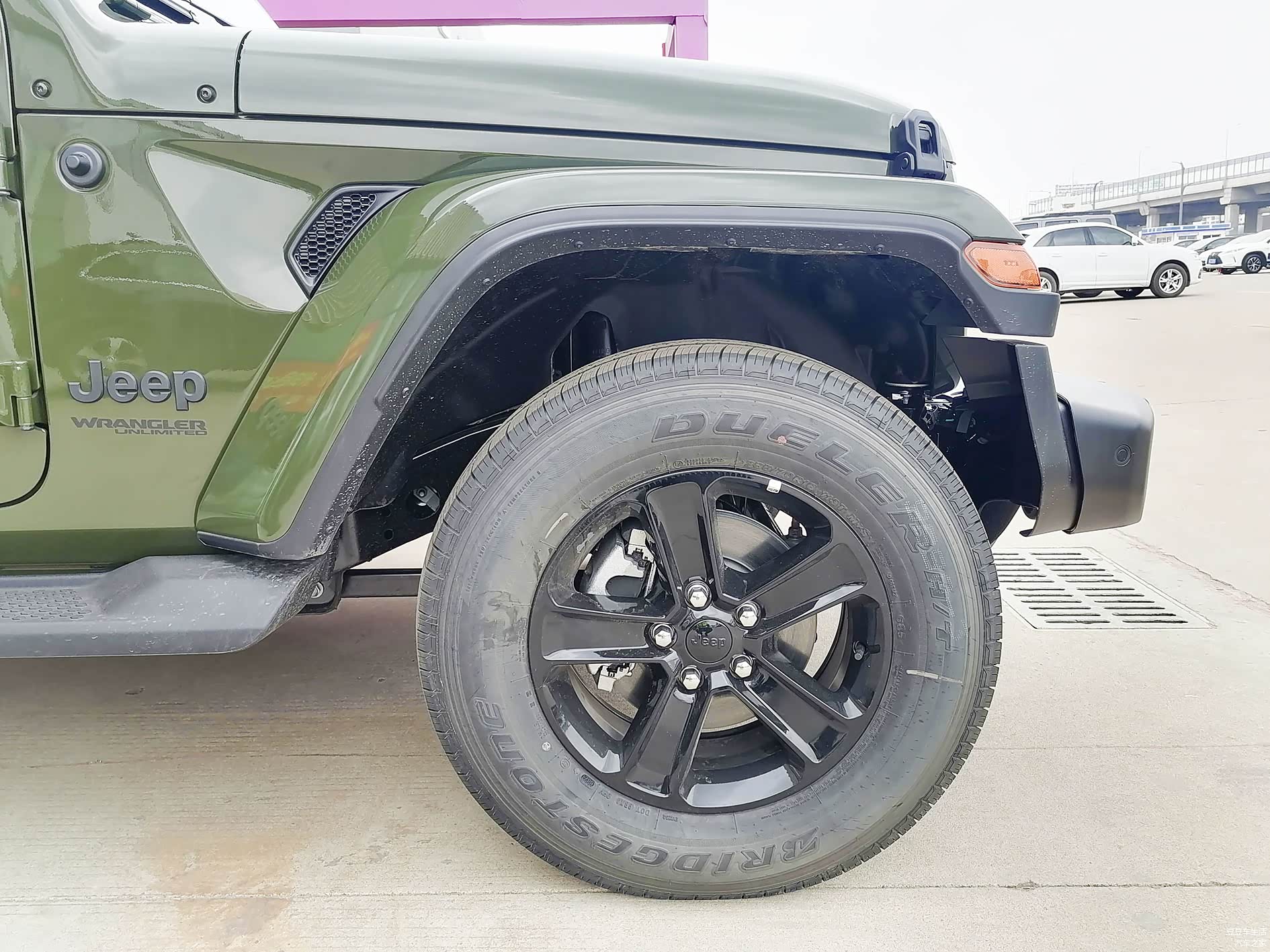 轮胎是普利司通的越野车专用轮胎,增加了黑色的轮圈。