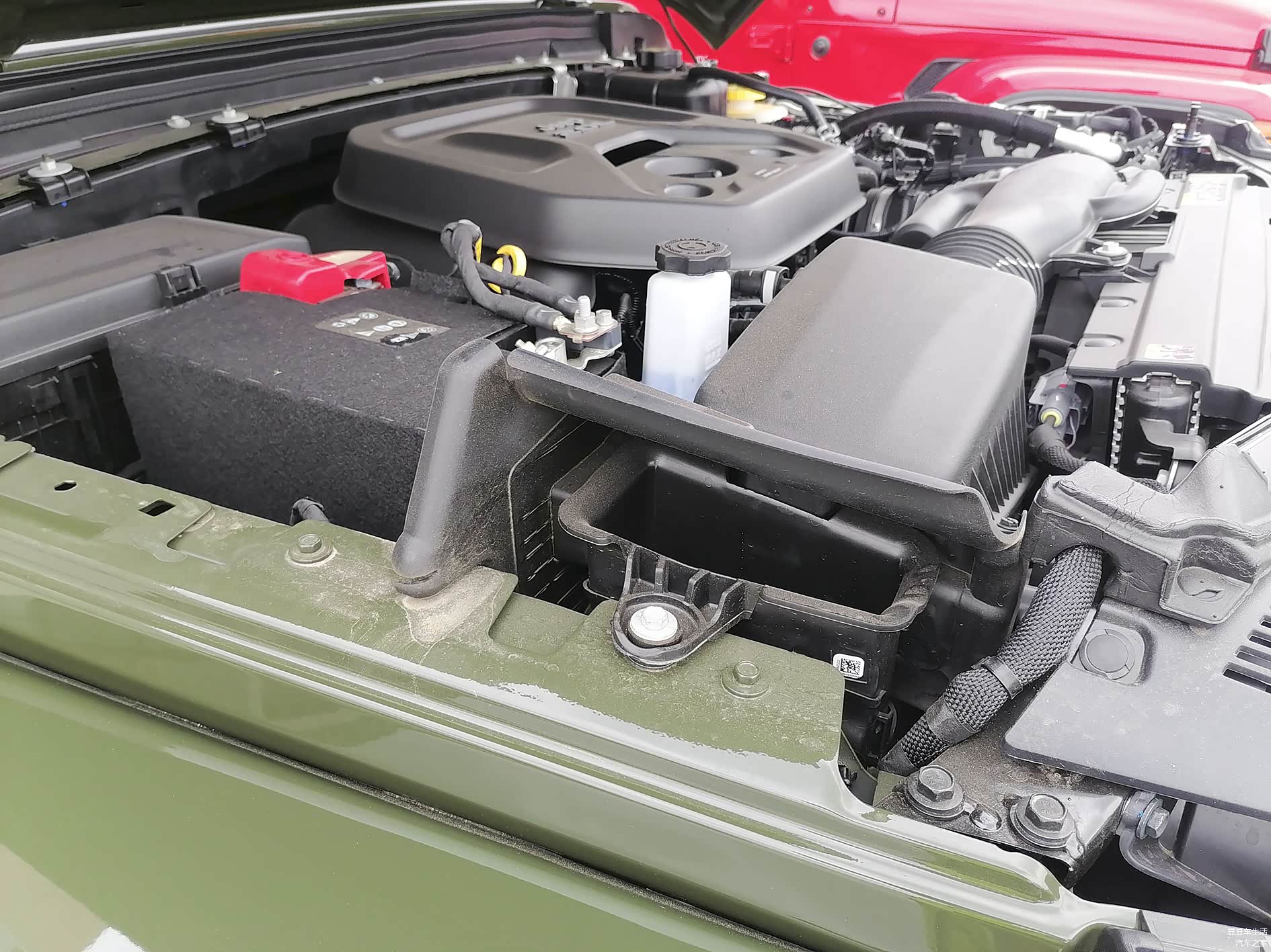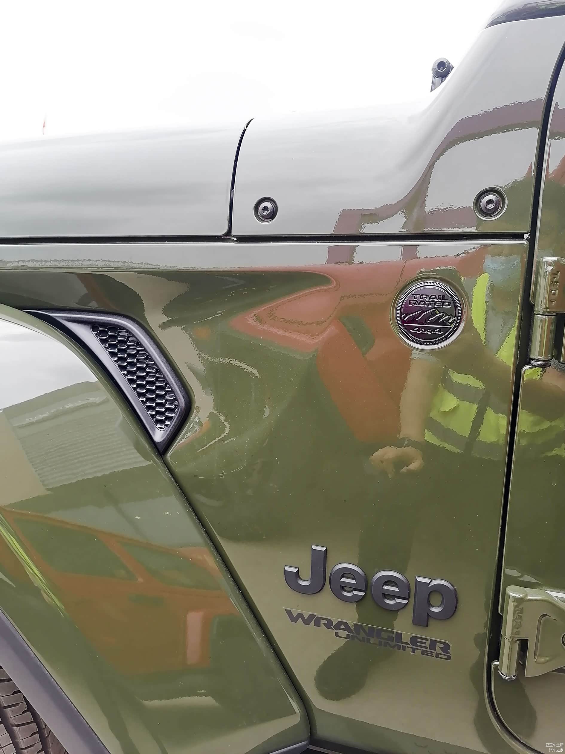 这个是牧马人的发动机进气口,这么高的进气口,难怪不怕走水路,官方数据是牧马人最大涉水深度76.2厘米,一般的小水坑基本上轻松加愉快地过去。