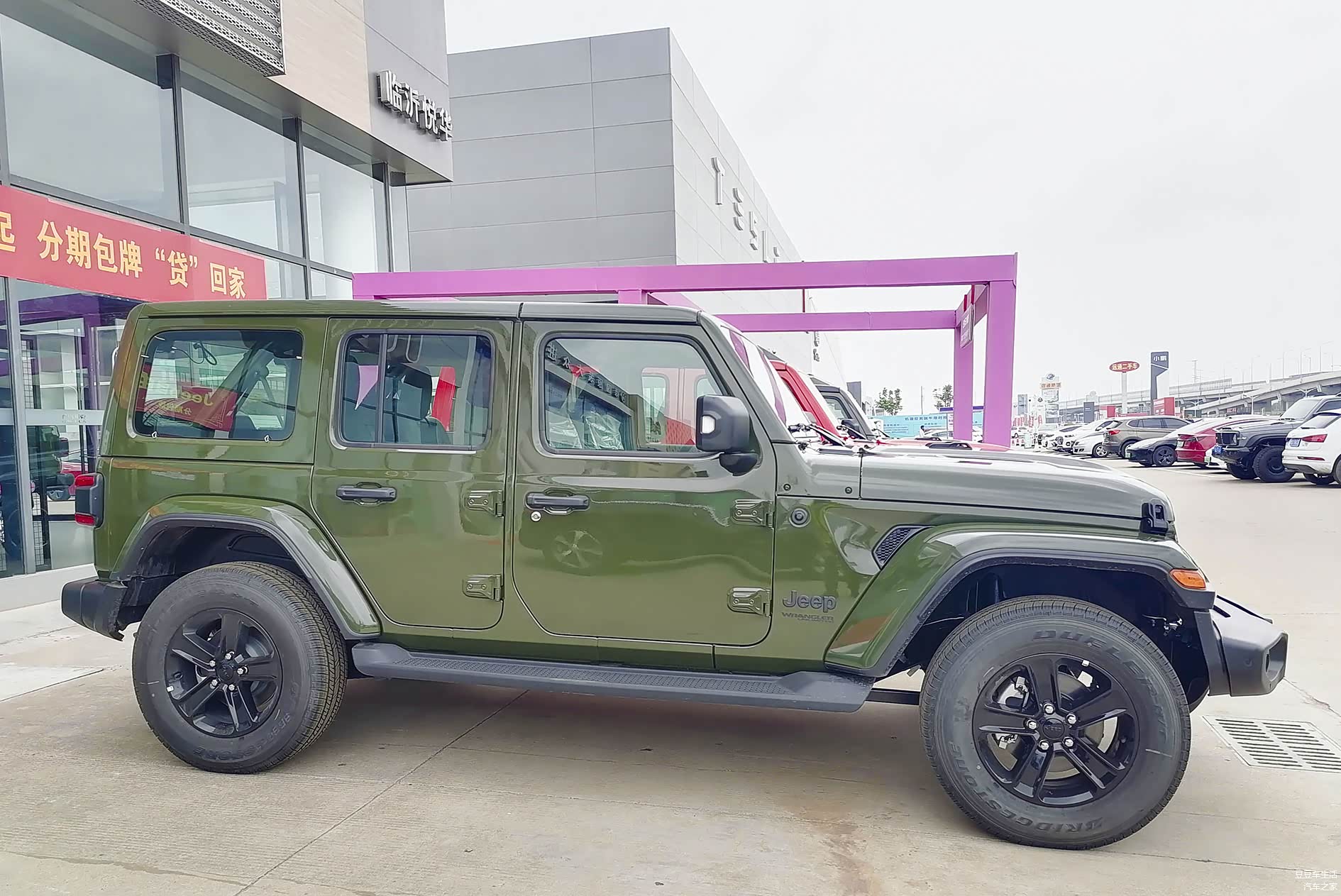 这个车就是我看的丛林限量版的牧马人,牧马人这个车外形设计的很经典,被称为全球偶像级SUV,丛林绿限量版是5月份上市的,价格是49.49万元,全国限量300台,我记得在2020年的时候Jeep曾经在罗宾汉版本上,生产过丛林英雄限量版,也是这个颜色。这款丛林绿也就是我们很熟悉的橄榄绿,军绿色。至于为什么生产这个颜色,主要是因为Jeep这个车最早生产的车都是这个颜色,可以说是向经典致敬吧。