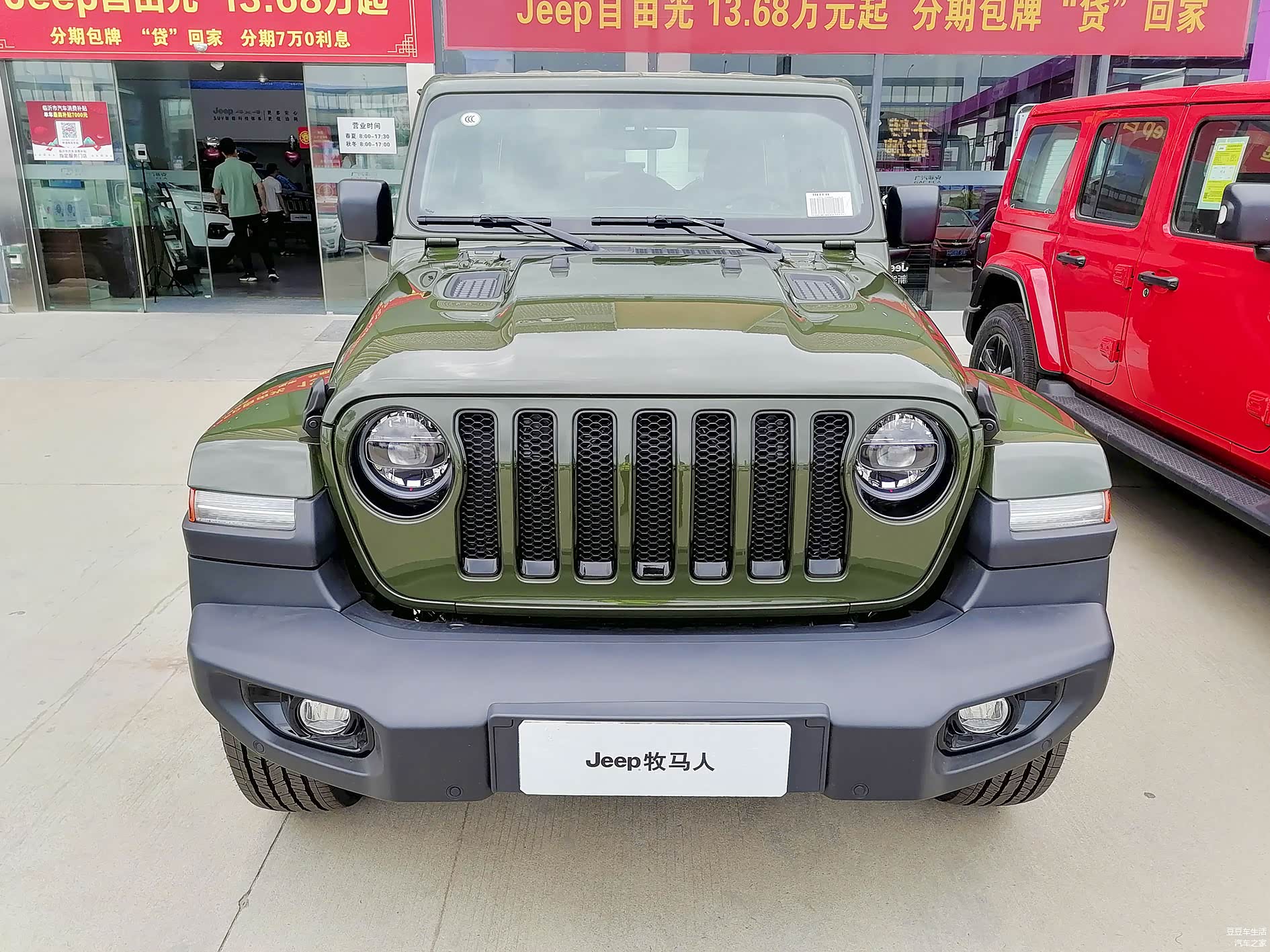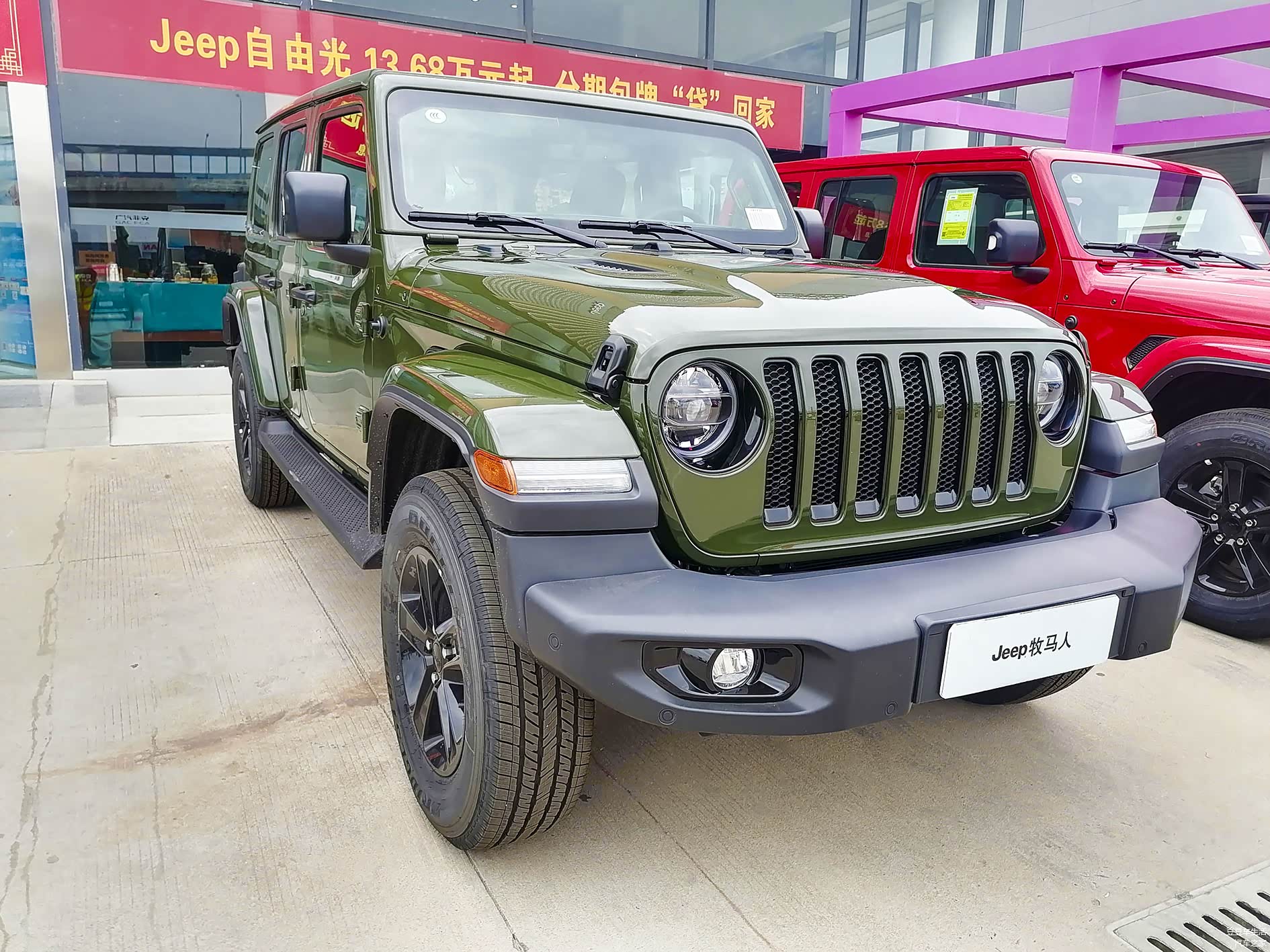 记得之前写过牧马人巴哈马沙滩粉的帖子,今年5月份的时候,Jeep厂家又出了亚马逊丛林绿这个颜色(在2020年的时候Jeep厂家出过一款丛林英雄纪念版也是绿色),今年是Jeep厂家的颜色年。,6月10日还会上市一款4xe荧光黄,加上之前的阿拉斯加极光绿、巴哈马沙滩粉、丛林绿、荧光黄,颜色就很全了。这款丛林绿的牧马人限量300台,卖完为止,和之前的限量车型预售方式一样,也是通过Jeep大吉大利小程序进行抢订,如果不抢订的话估计得7月以后才能到店。