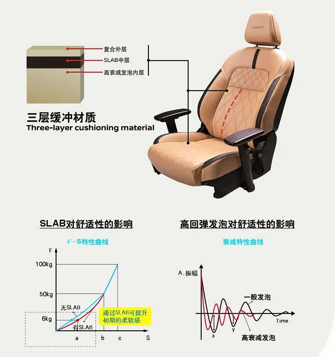 要说从科技水平来看,日产天籁采用的三层缓冲材质好像也有点儿说服力。它的第一层是柔软的复合层,让你摸起来觉得比较亲切。第二层是低反作用力SLAB层,主要是让乘坐的压力变得分散。第三层是高衰减发泡层,这一层的作用就是缓冲颠簸了。这样一看,日产天籁的“大沙发”在原理上并没有一个非常清奇的科学原理,只要任何一个厂家肯多花点儿钱就能办成的事儿。至少来说,从难度上来看,实现“大沙发”的难度比超越灯厂奥迪来说要容易多了。