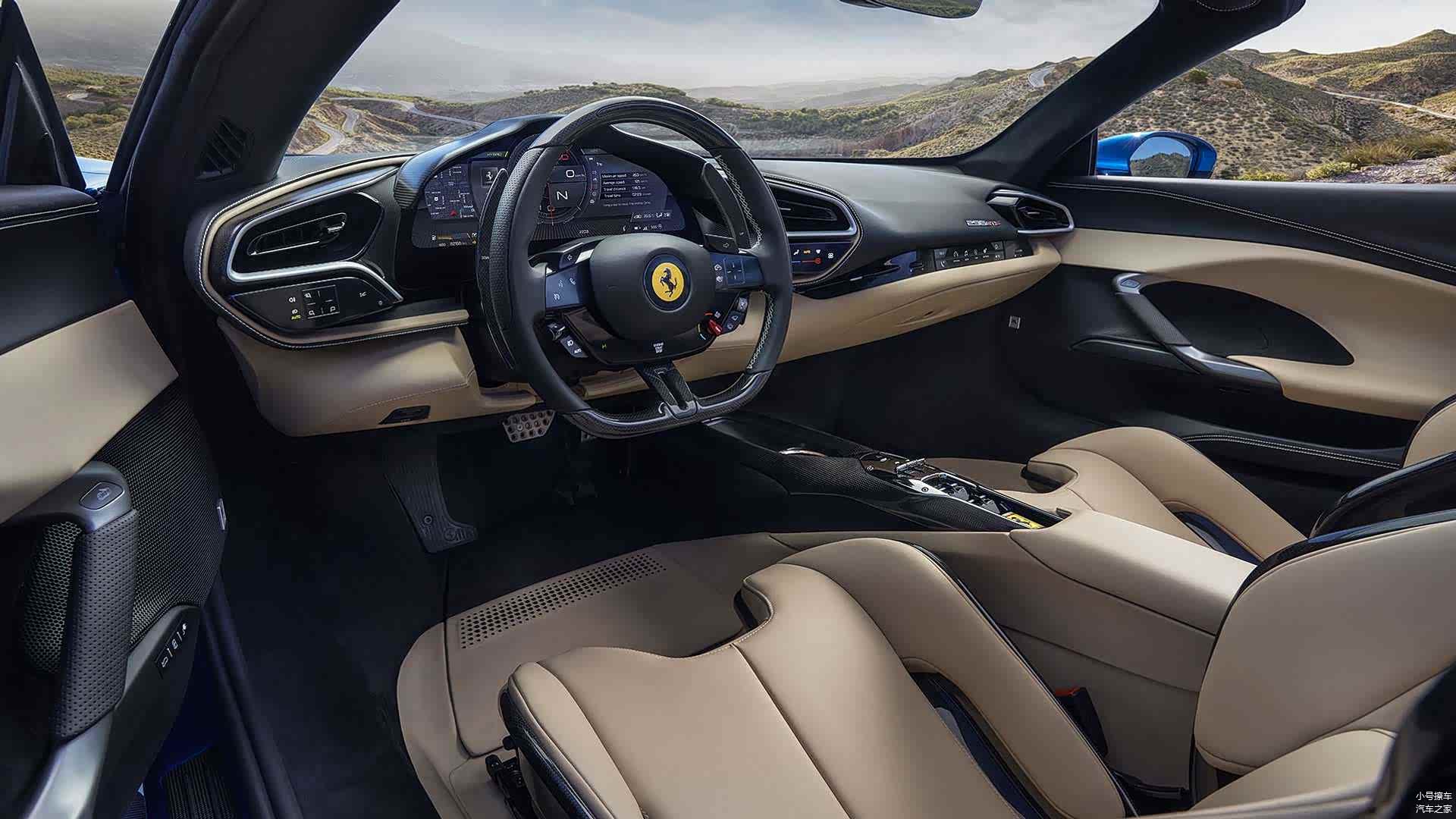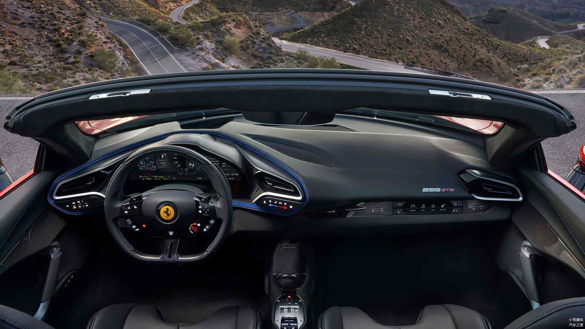 侧面造型方面,法拉利296 GTS采用的是机械折叠式硬顶的设计,时速45km/h以内敞篷机构都可以自由开合,整个开合过程耗时14秒左右;后翼子板位置配备有导流槽,搭配黑色多辐式轮毂以及打孔刹车盘进一步增强了运动感。
