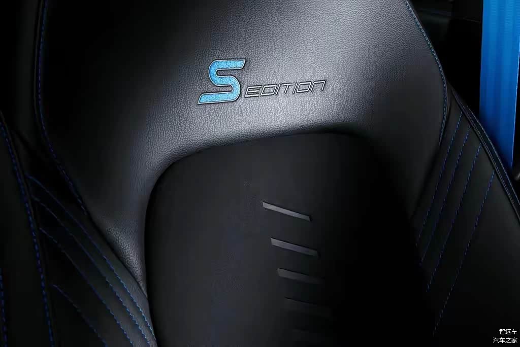 不同之处在于S EDITION车型在运动座椅的靠背镶嵌有专属刺绣,座椅采用的是麂皮材质,安全带也被涂成了蓝色,与车身相呼应。