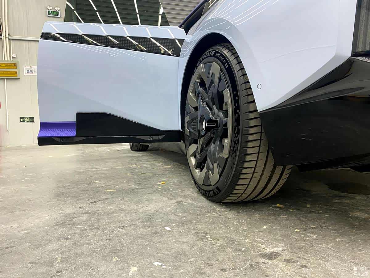 除了张扬个性的外观造型,HiPhi Z谍照还释放出了一个重要信息。我们可以关注得到,谍照中HiPhi Z采用了一款高扁平比轮胎,尺寸相当惊人。据悉该款轮胎为HiPhi X相同的米其林Pilot Sport EV轮胎,但尺寸达到了285/40 R22,甚至看上去比售价高达150万的Tycana Turbo的285/40 R20要更加霸气,这也再次证实了HiPhi Z明显偏向于性能取向的身份定位。
